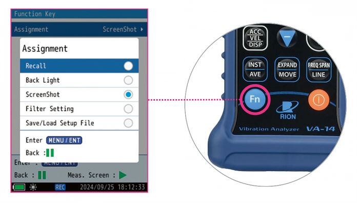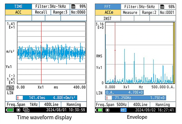 ●Waveform recording (Vibration waveform data is saved simultaneously with FFT analysis)